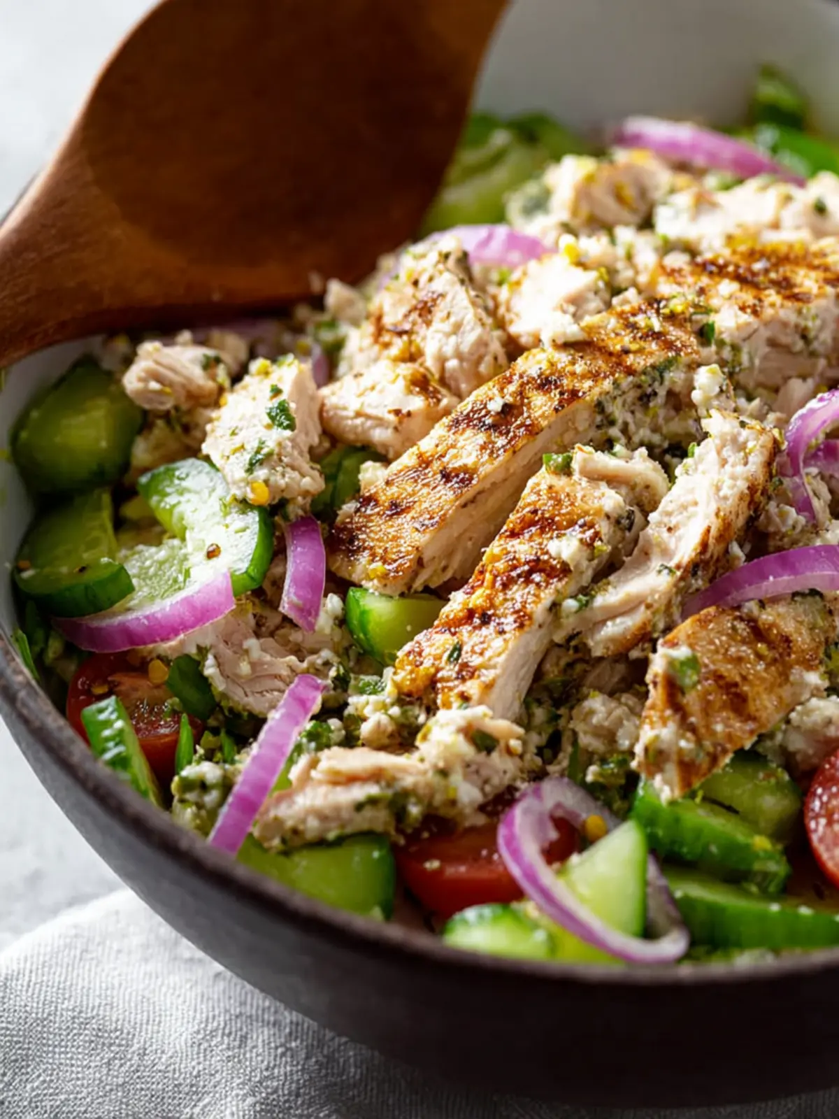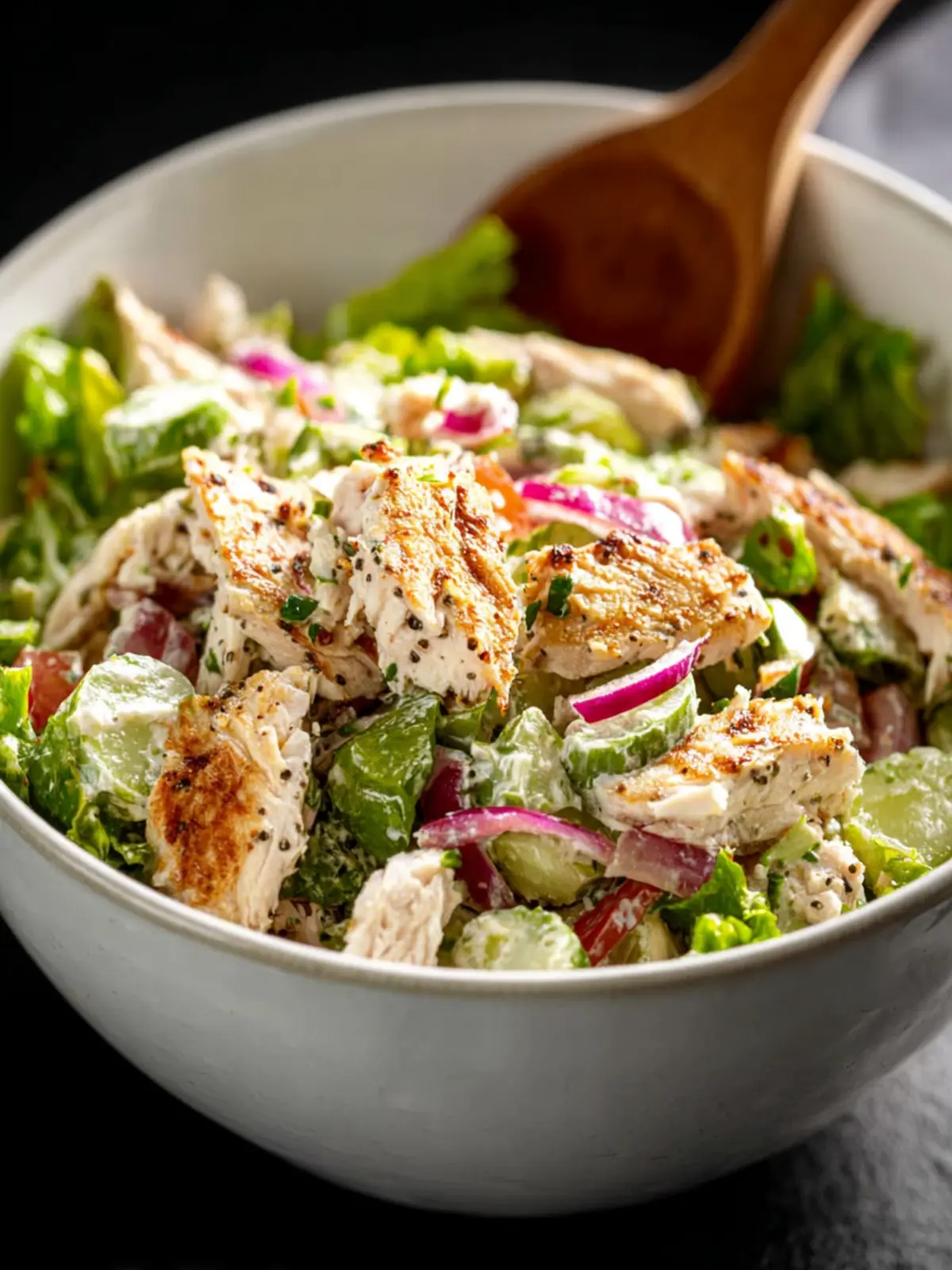Balanced Nutrition: Packed with protein from the chicken and a variety of vitamins from the veggies, this salad makes for a well-rounded meal. It’s satisfying enough to fill you up, yet light enough to keep you energized.