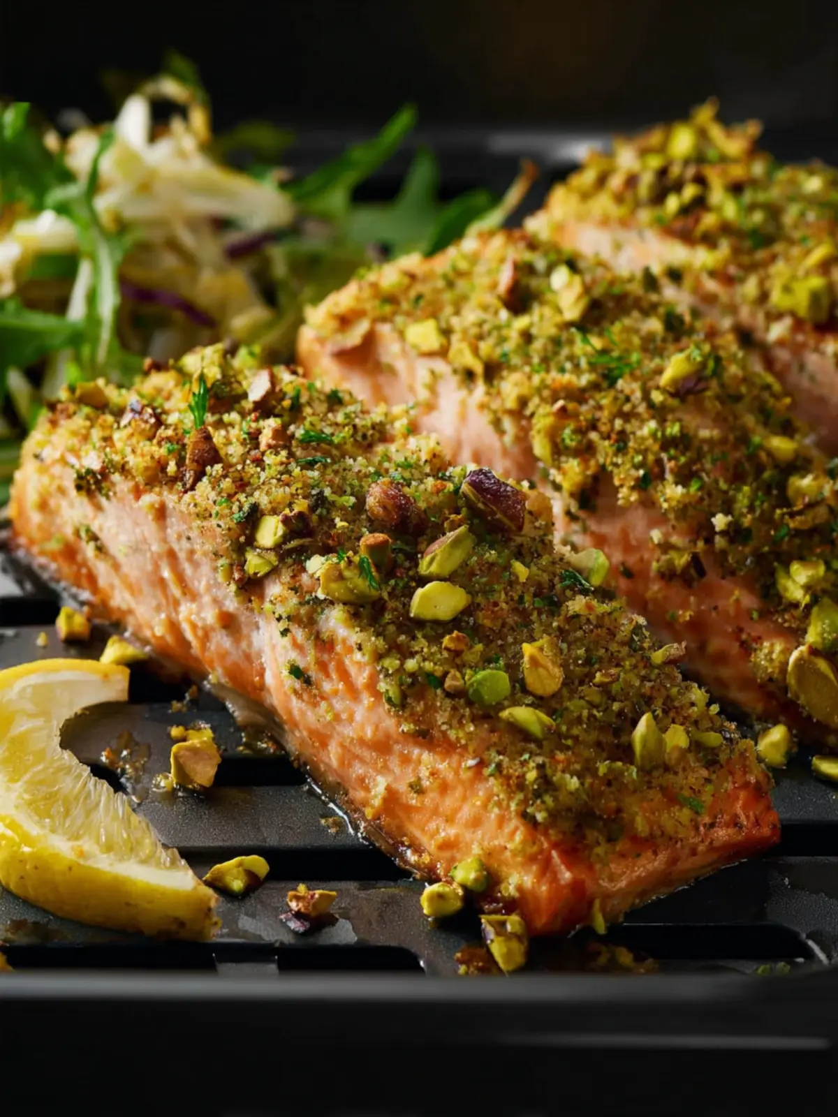 The beauty of this dish lies in its simplicity. You don’t need to be a professional chef to create a restaurant-quality meal. With just a few key ingredients, you’ll craft a dish that’s not only visually stunning but also bursting with nutrition. Salmon is rich in omega-3 fatty acids, making it a heart-healthy choice, while pistachios add a delightful crunch and a dose of protein.