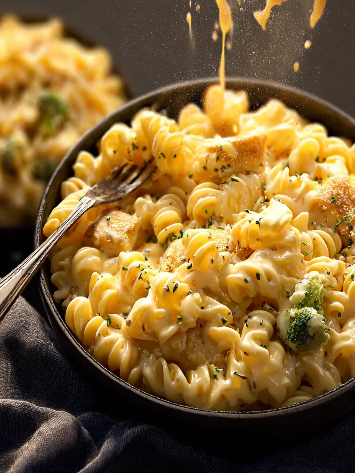 This creamy cavatappi pasta dish with chicken and broccoli is both comforting and delicious, perfect for a family dinner.