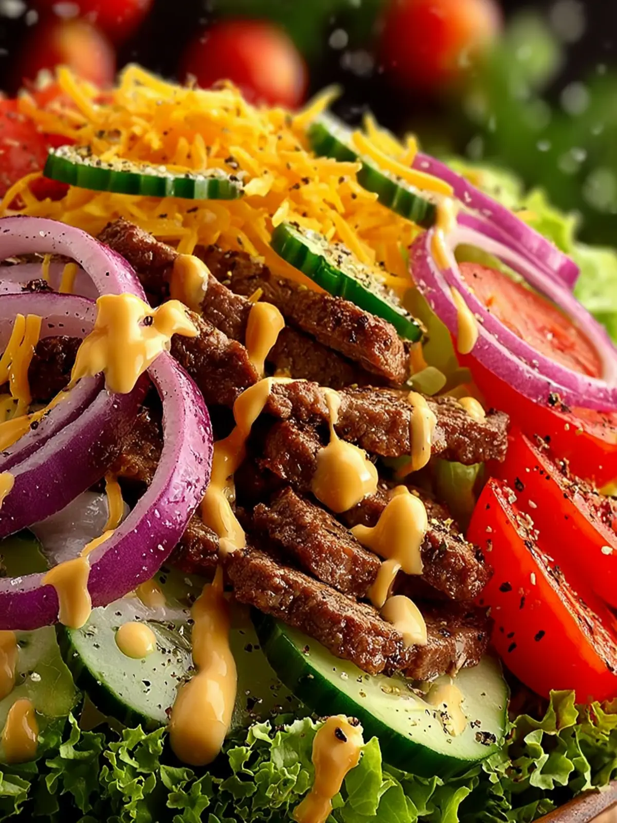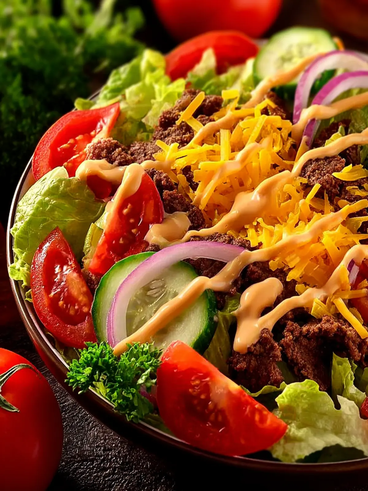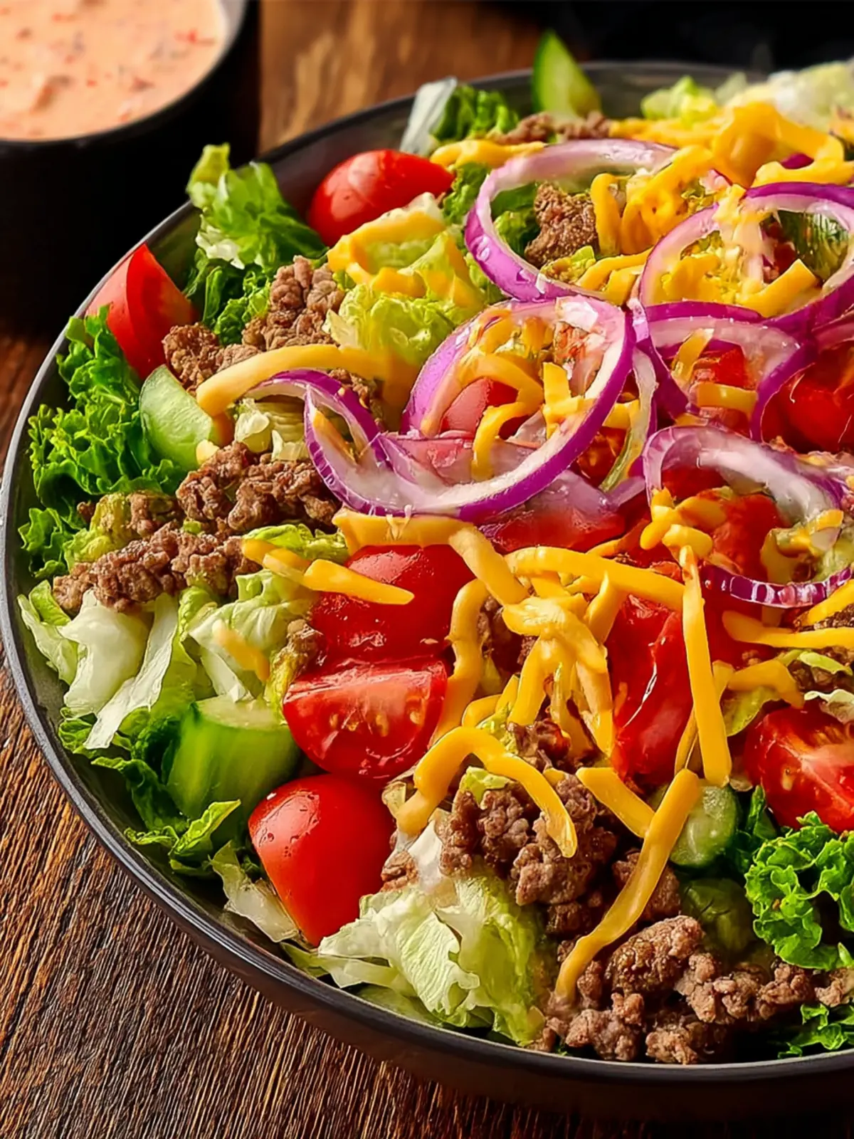 The beauty of this salad lies in its versatility. Picture digging into a big, colorful bowl filled with crisp lettuce, plump tomatoes, crunchy pickles, and savory seasoned ground beef, all topped with a creamy, tangy dressing that mimics the iconic Big Mac sauce. It’s like a cheat meal that doesn’t leave you feeling weighed down.
