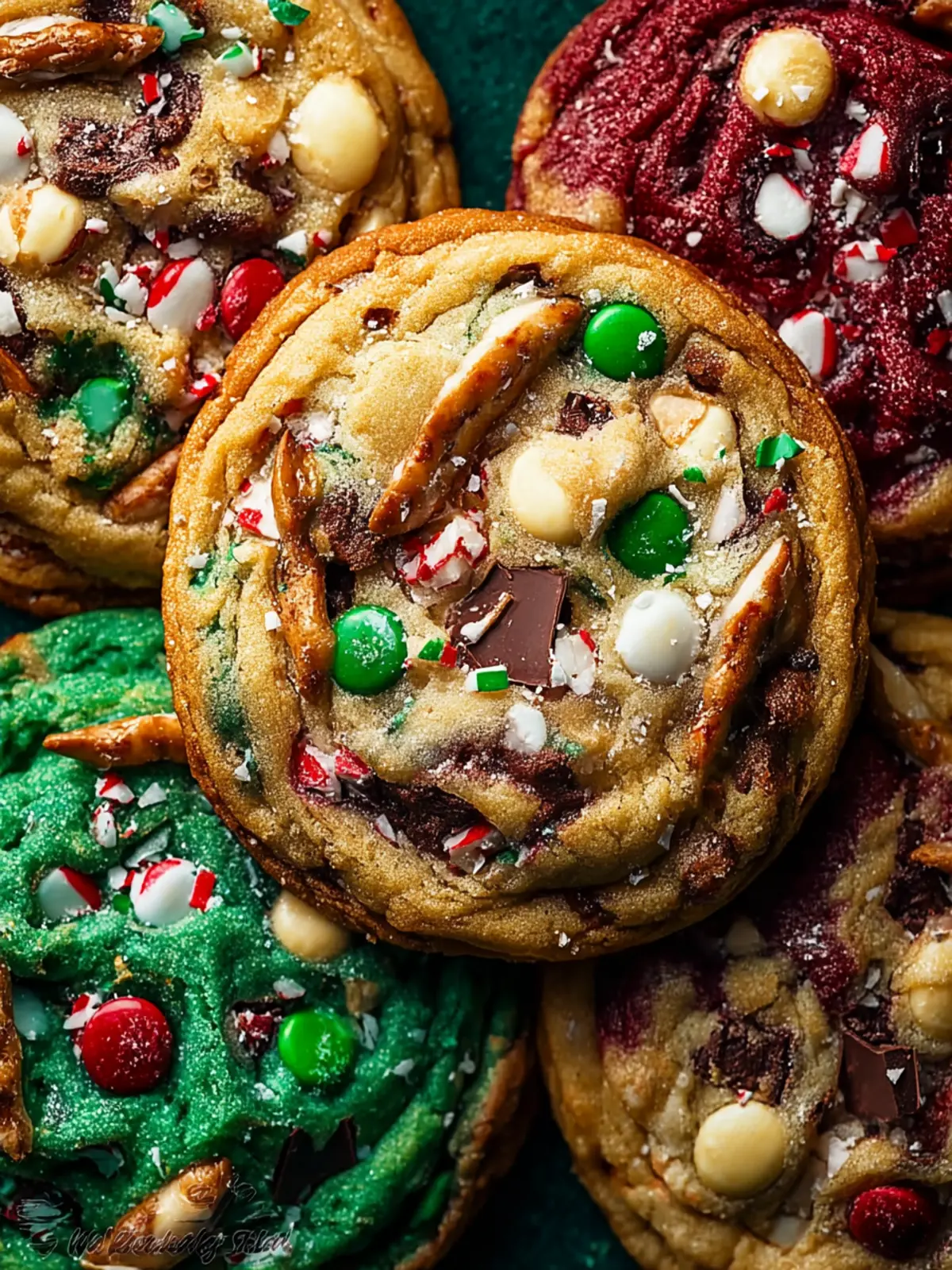 Transforming your Christmas Kitchen Sink Cookies into a holiday masterpiece is easier than you might think! Consider adding festive sprinkles or mixing in seasonal ingredients like dried cranberries, chopped pecans, or candied orange peel. You can also swap out regular chocolate chips for peppermint-flavored ones or even add a touch of holiday spices like nutmeg or ginger. A sprinkle of sea salt on top before baking can enhance the flavor and elevate the festive feel—perfect for those holiday parties!