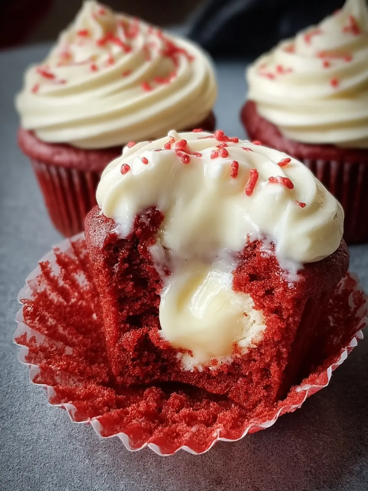 Cream Cheese Filled Red Velvet Cupcakes First Image