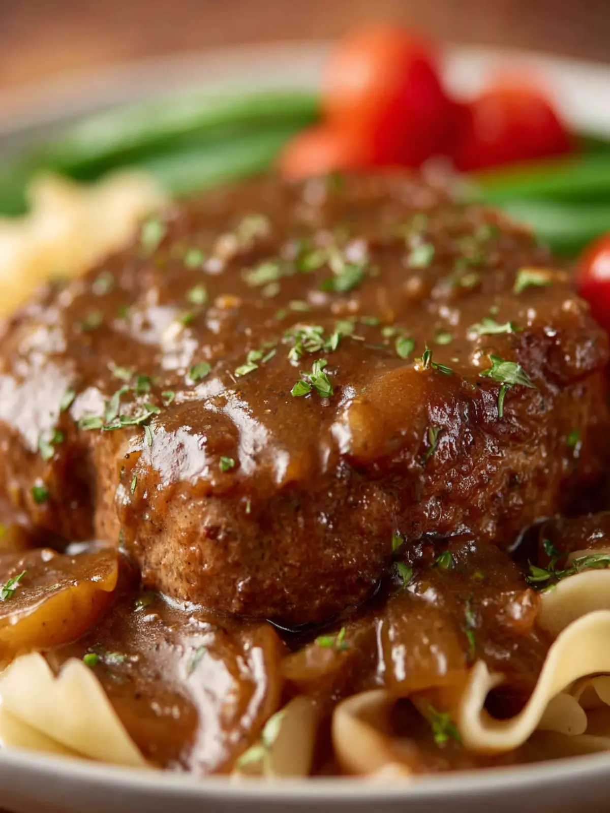 6. Serve the steak and gravy over 12 ounces of egg noodles and enjoy!