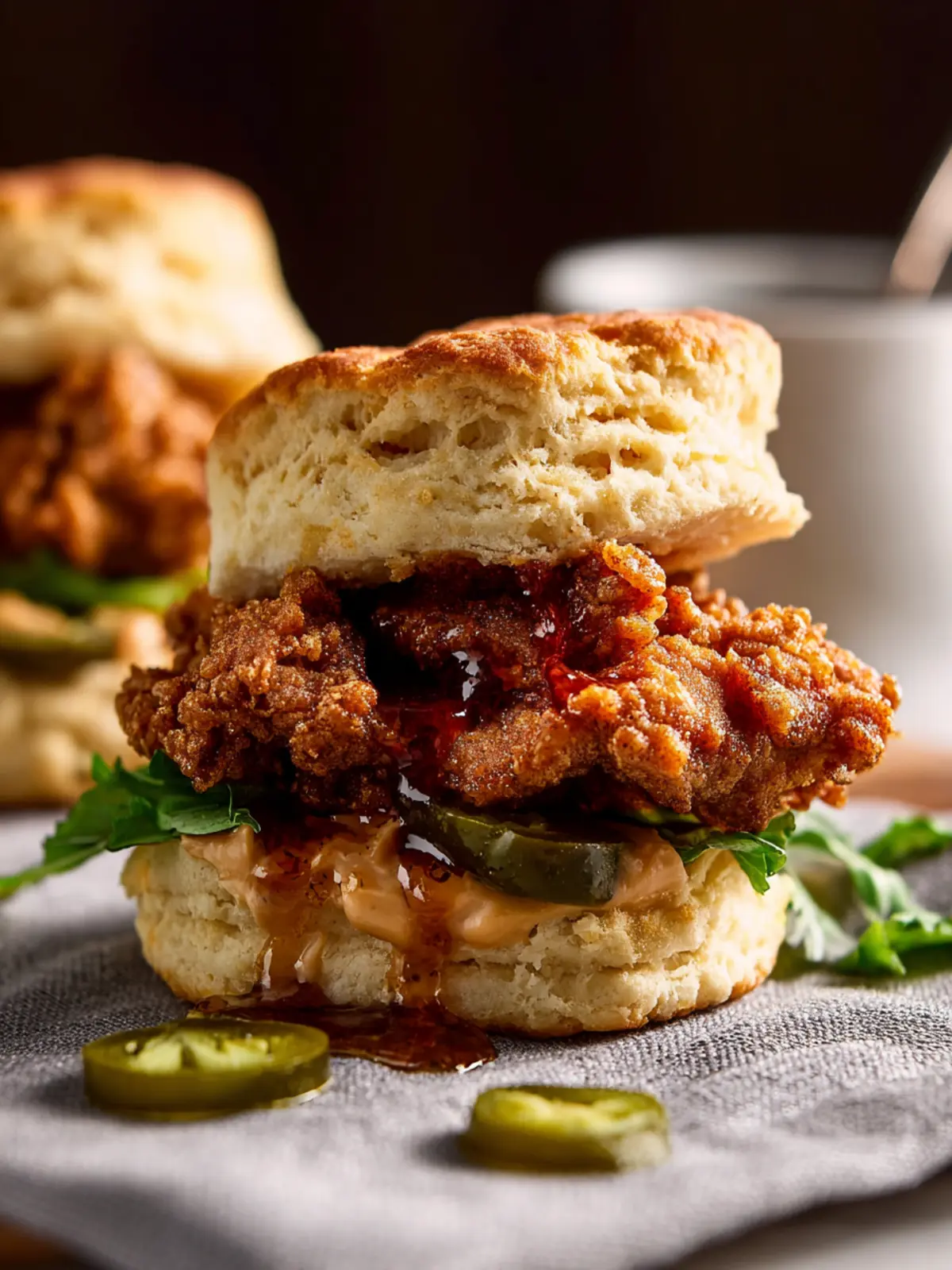 If you’re looking for a meatless option, consider crispy fried cauliflower or chickpea patties. These can serve as a delicious substitute while still maintaining that satisfying crunch. Drizzle that hot honey butter over your biscuits for an irresistible finishing touch.
