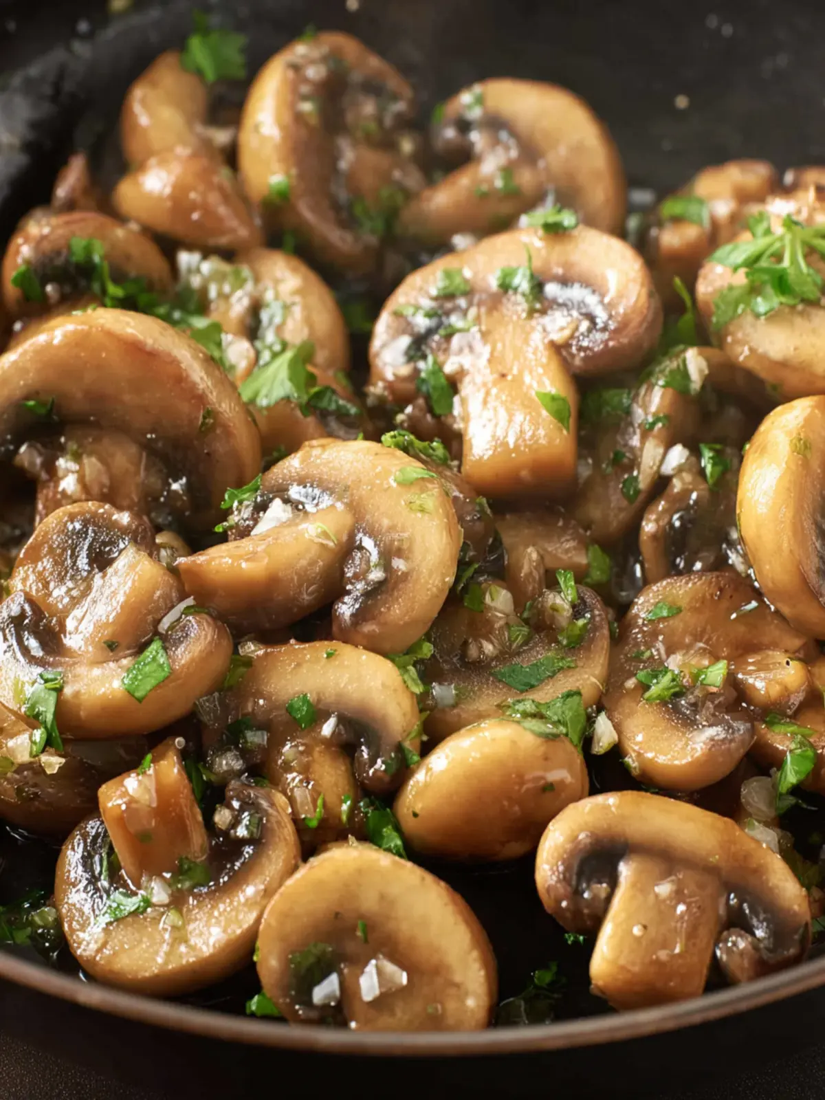 Delicious sautéed button mushrooms in a garlic butter sauce, perfect as a side dish or topping.