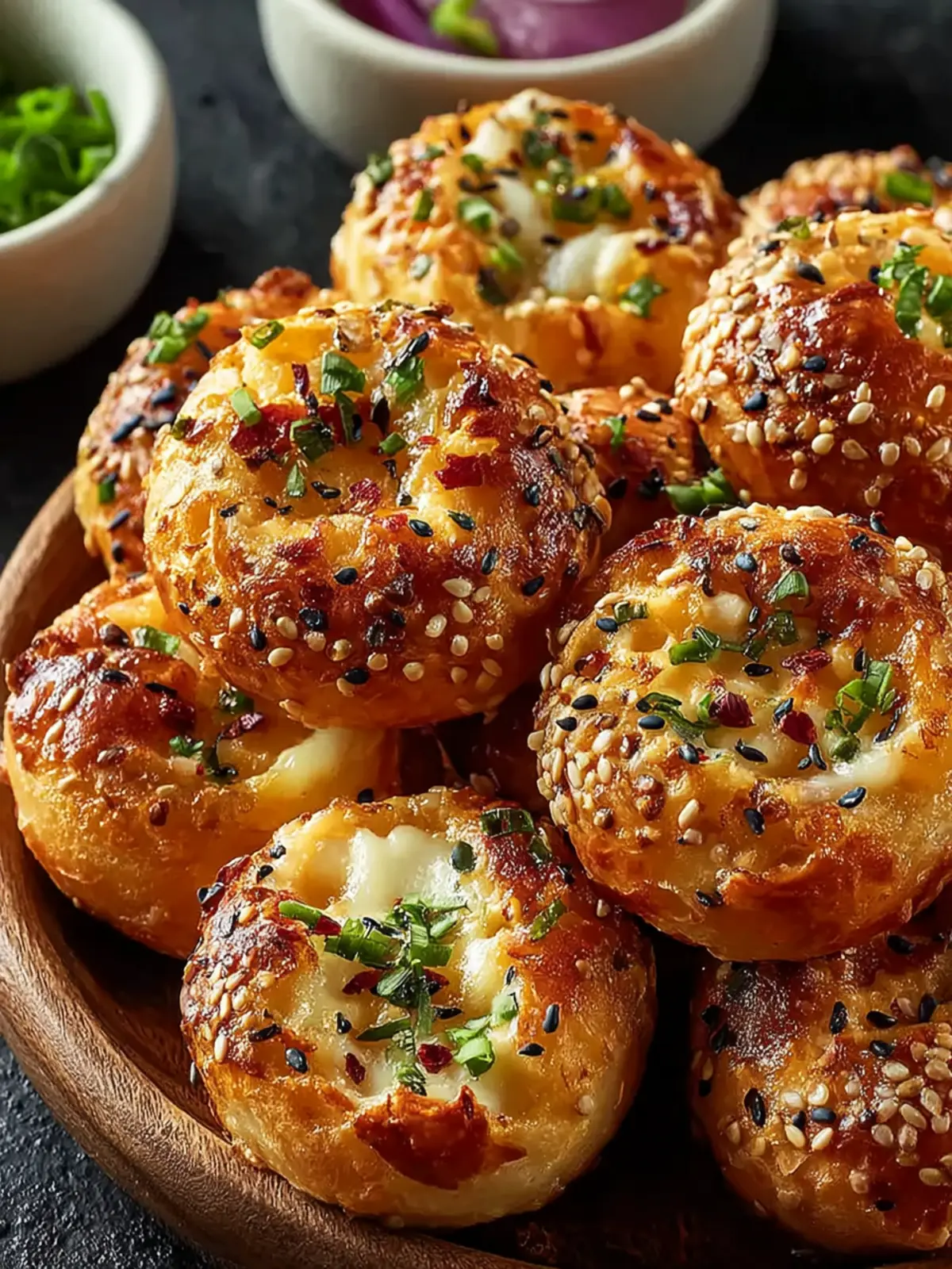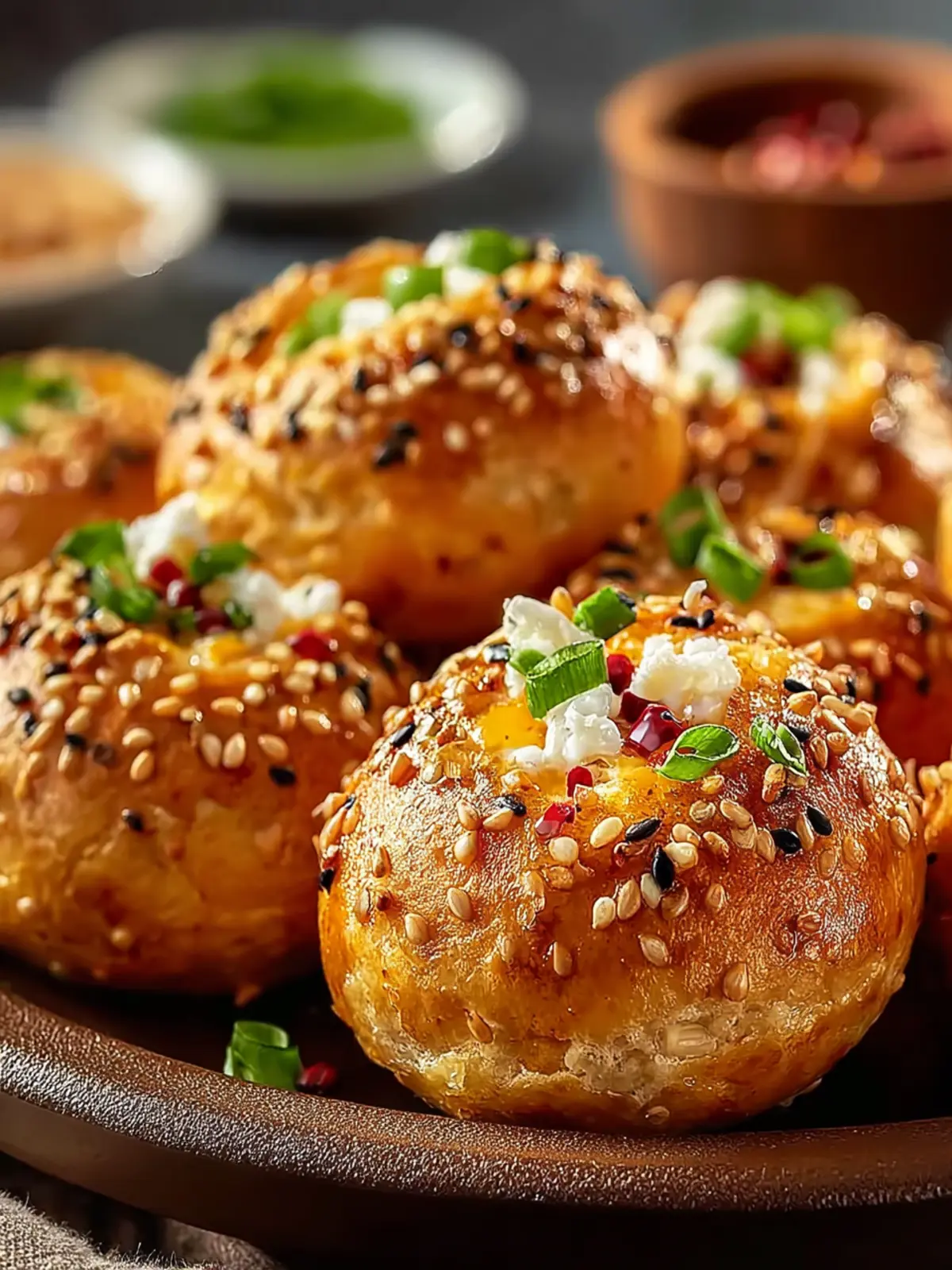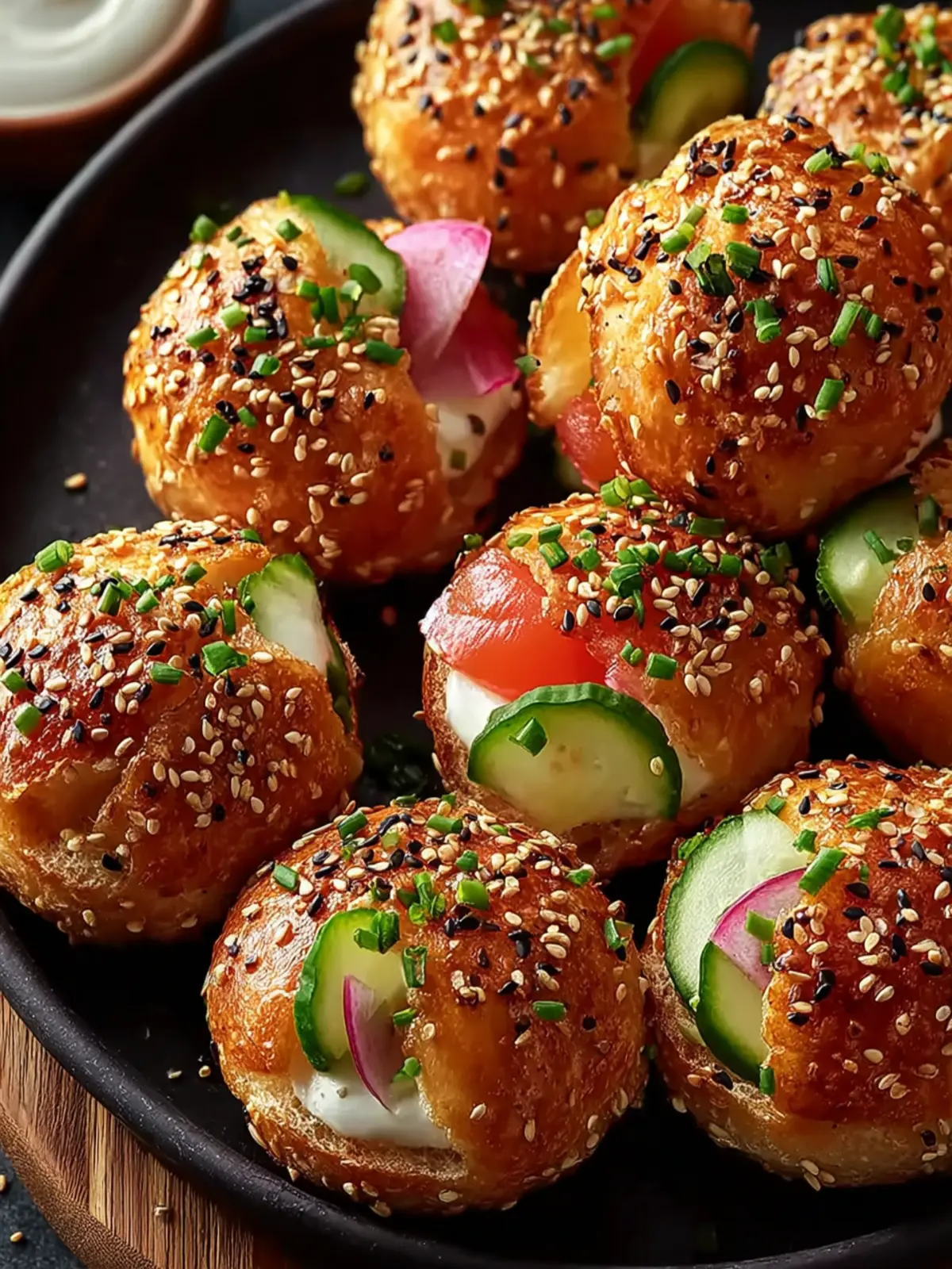 - Sprinkle your choice of toppings such as sesame seeds or everything bagel seasoning on top of each bite.