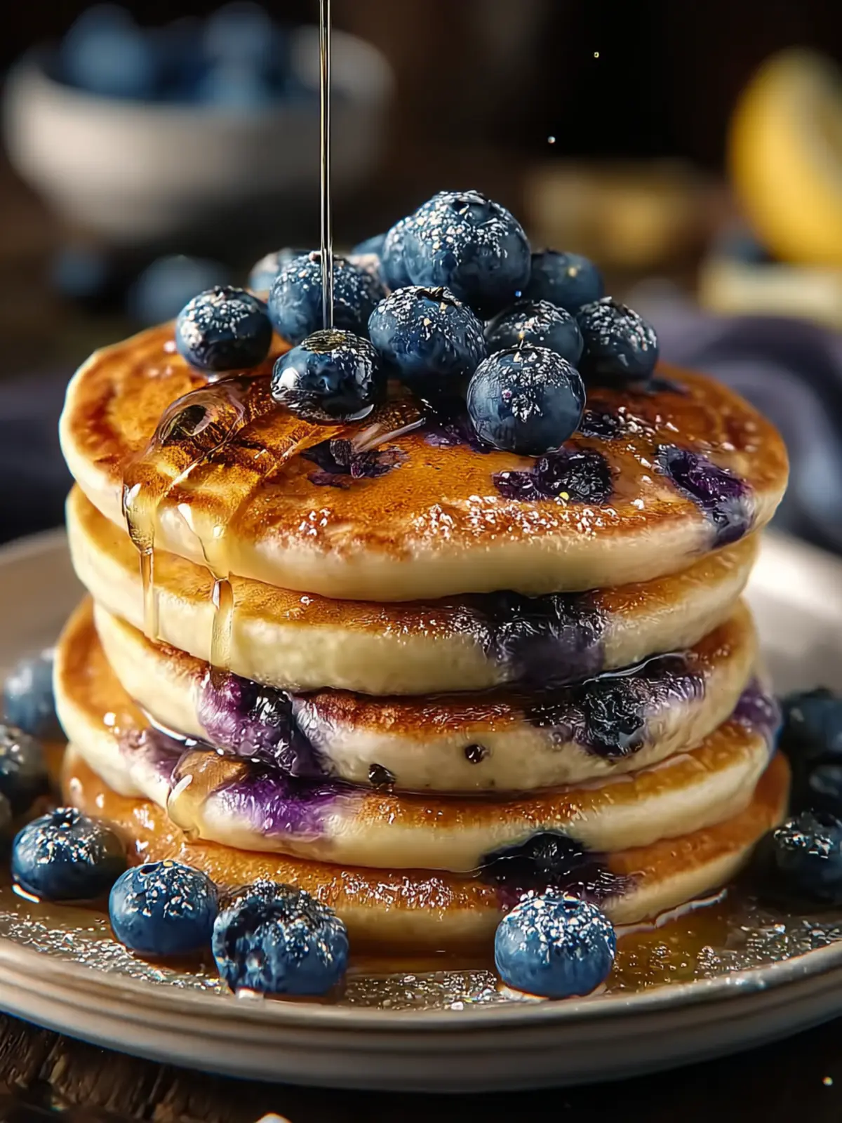 • More Blueberries: Highlight the star ingredient by topping your pancakes with extra fresh blueberries. This adds vibrant color and fresh flavor.