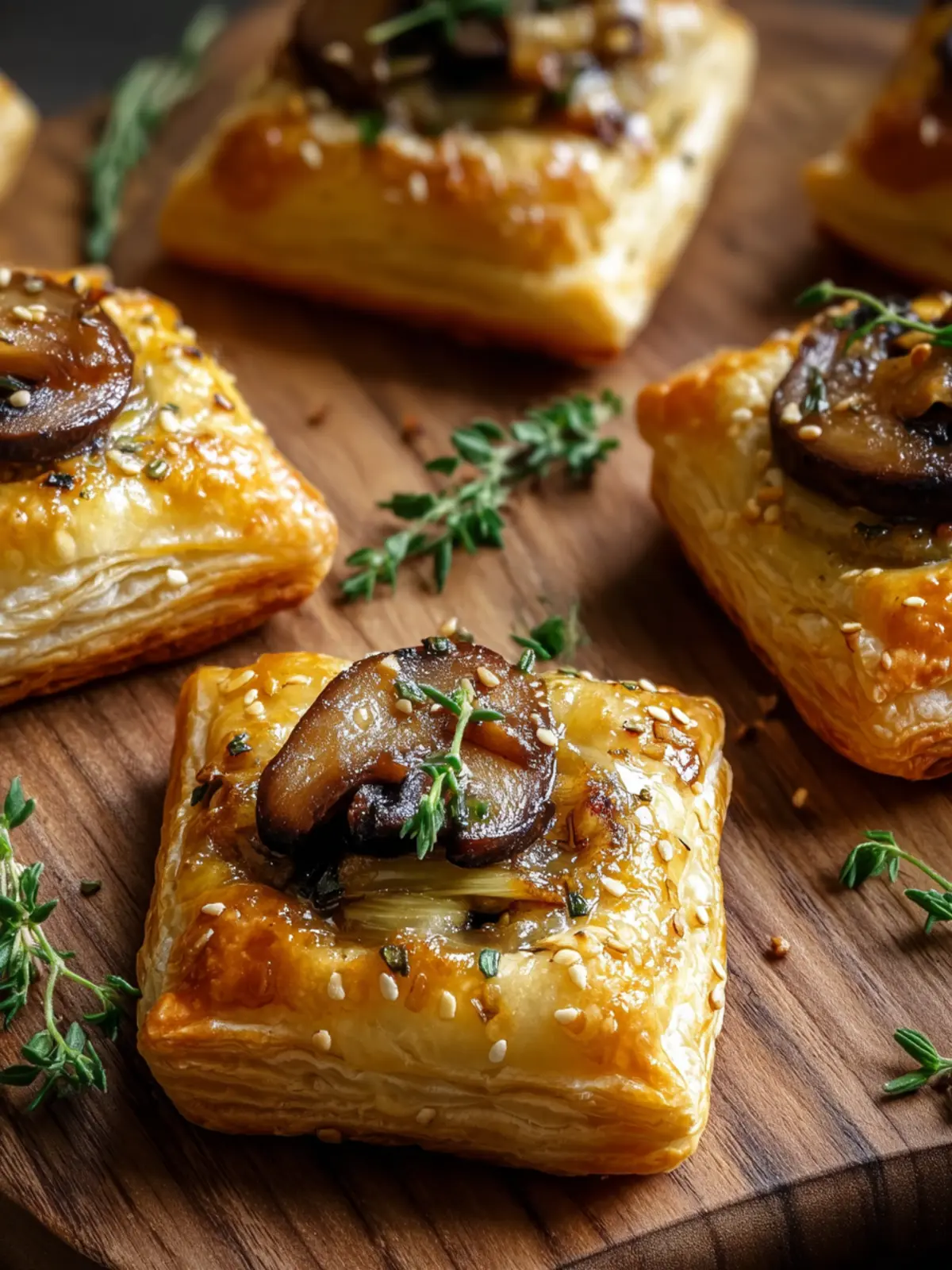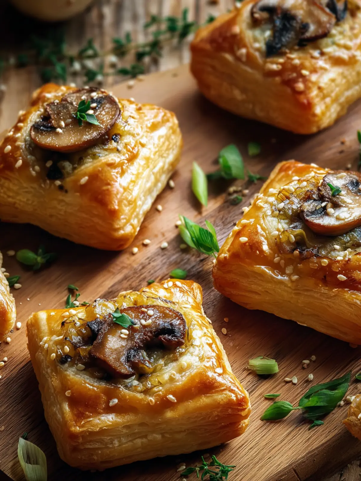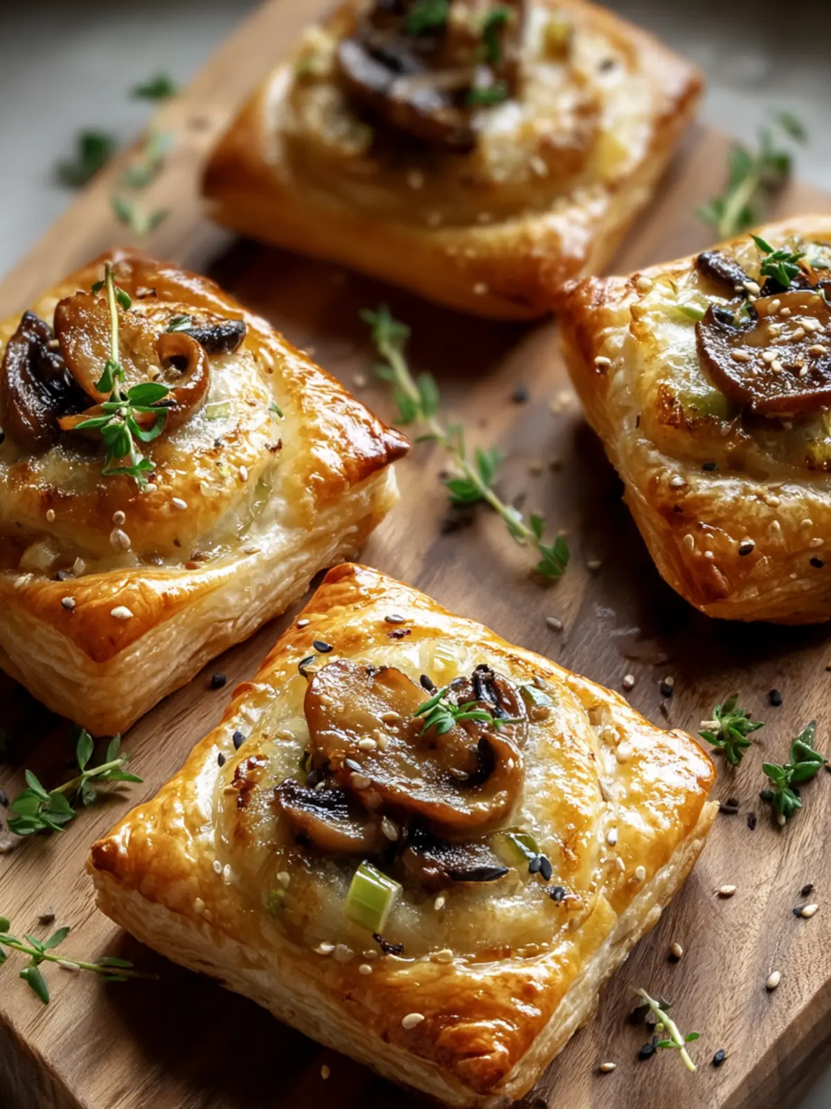 Delicious puff pastry bites filled with a savory mushroom and leek mixture.