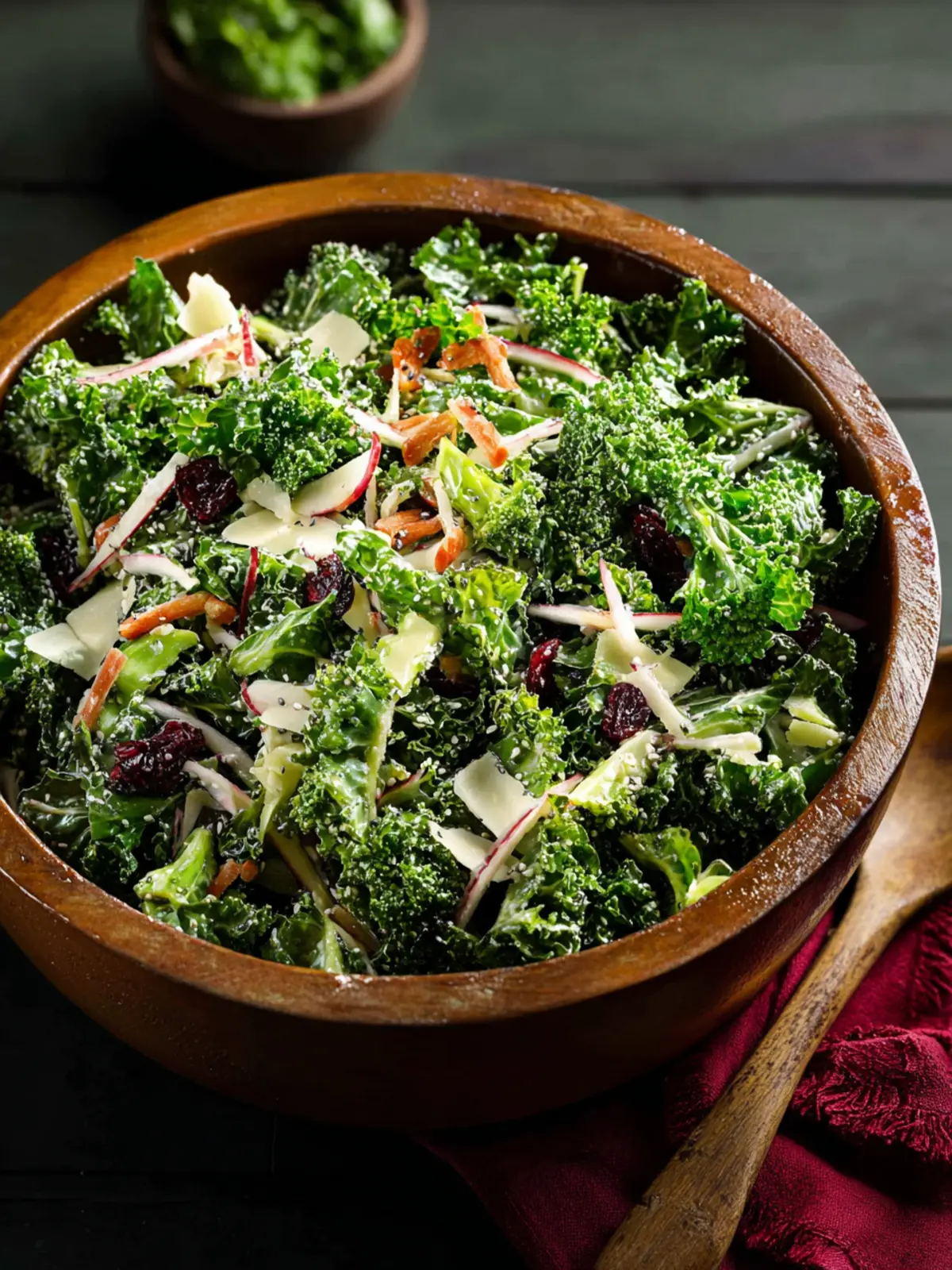 Kale: Fresh, vibrant kale adds a nutrient-packed crunch to this salad, making it the star of the show. Its robust leaves hold up beautifully against the dressing, ensuring each bite is bursting with flavor and health benefits.