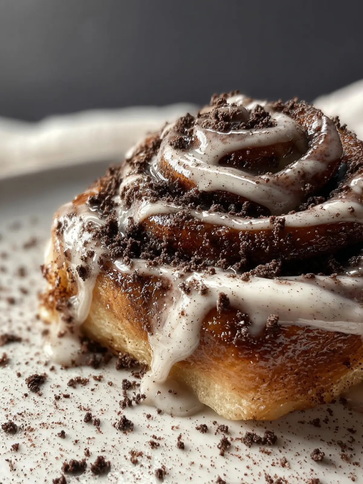 Deliciously sweet cinnamon rolls filled with crushed Oreo cookies and topped with creamy frosting.