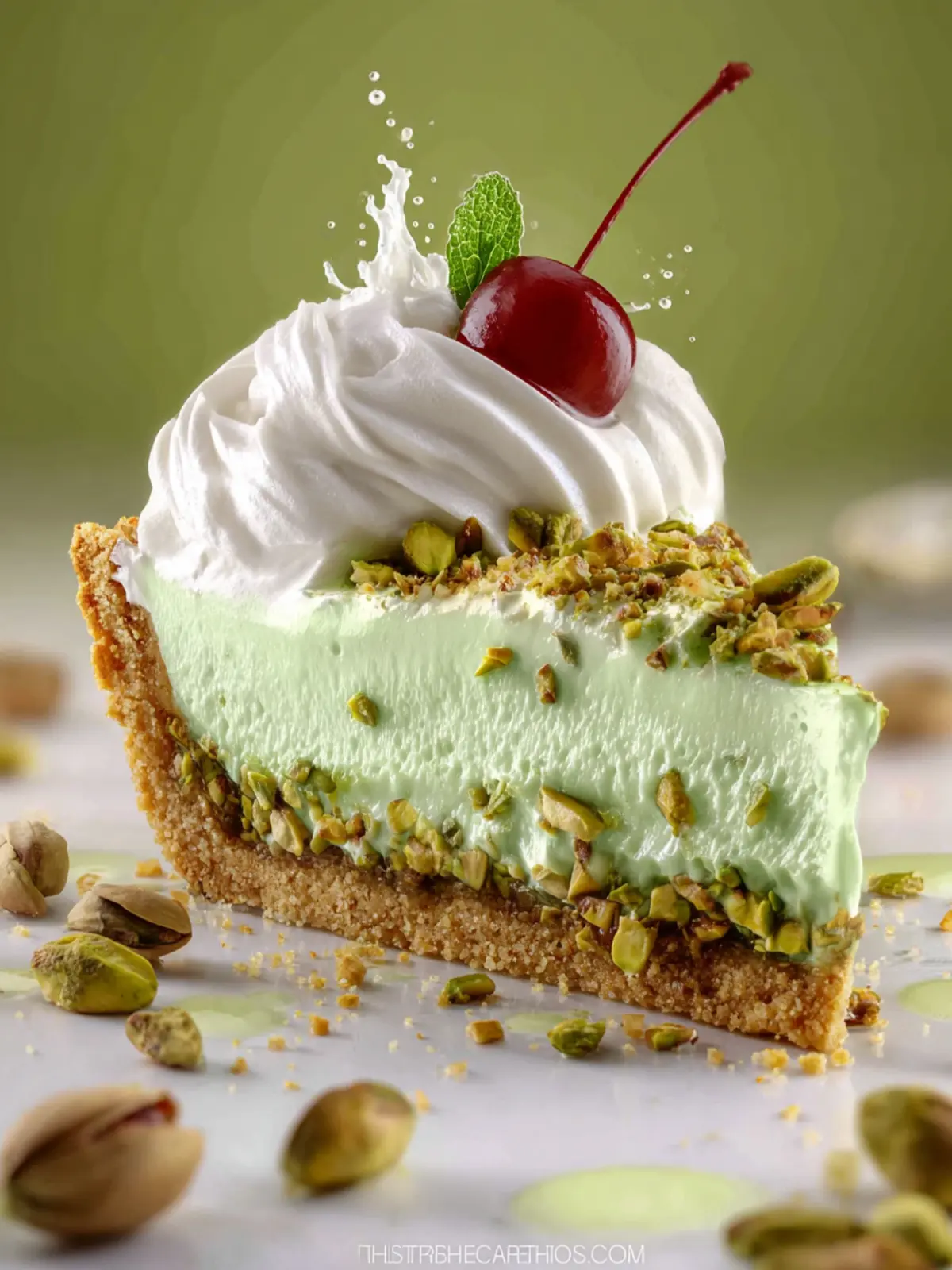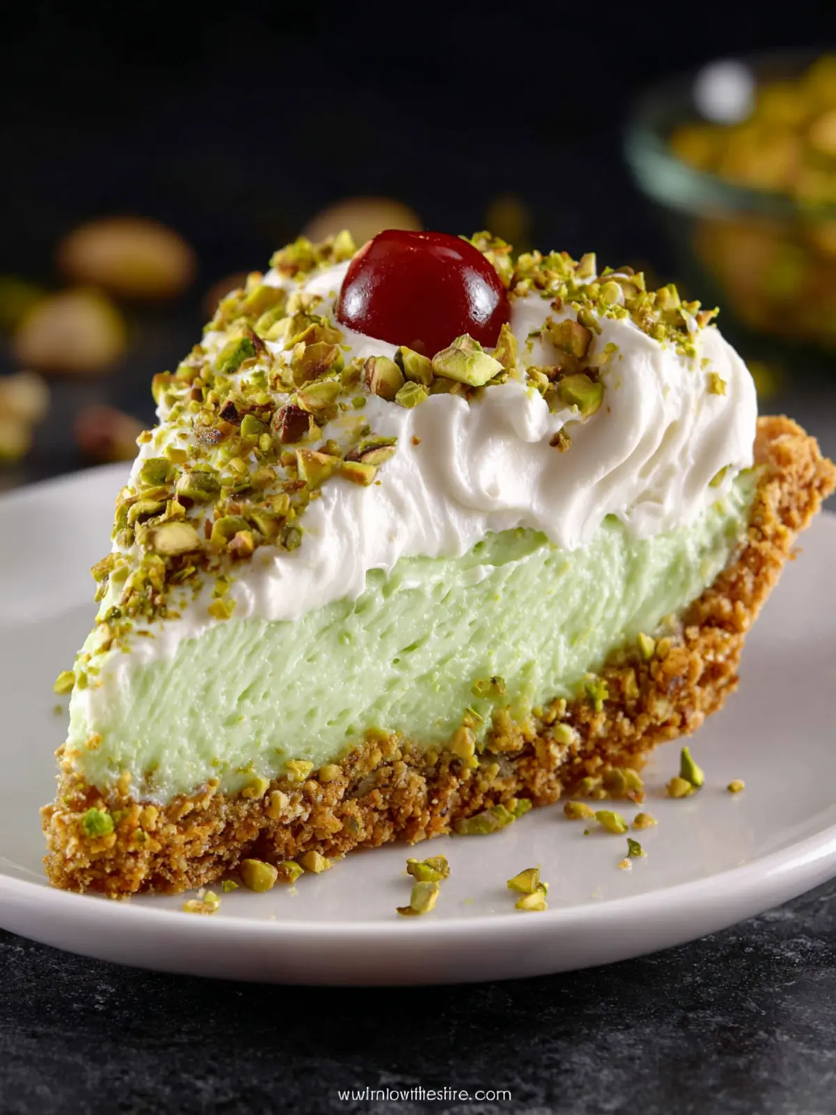 A delicious and creamy pistachio pie with a graham cracker crust.