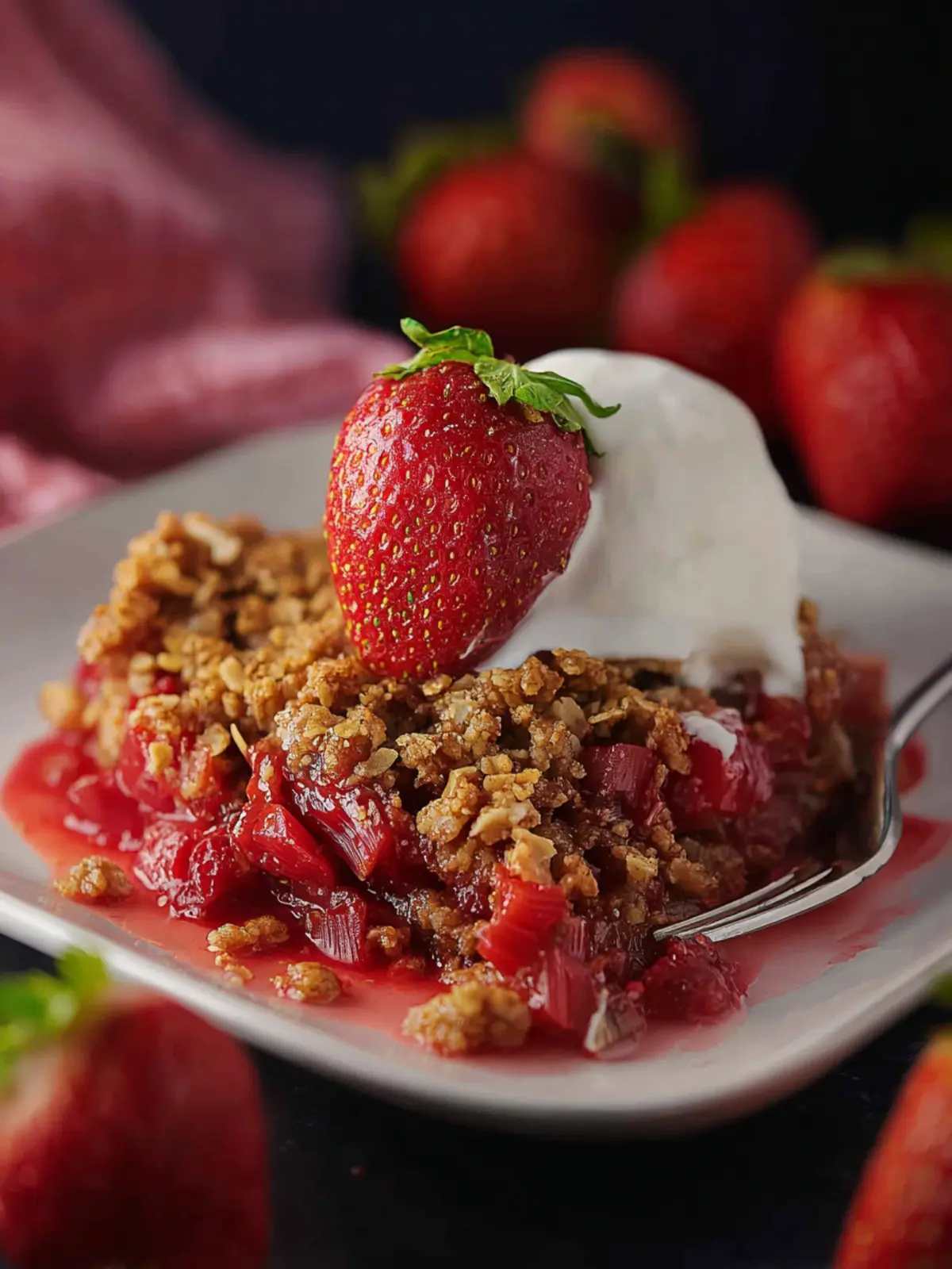 Rhubarb: This lively vegetable adds the perfect tang to your crisp. Look for firm stalks with a deep crimson hue; they promise a robust flavor that balances beautifully with sweet strawberries.