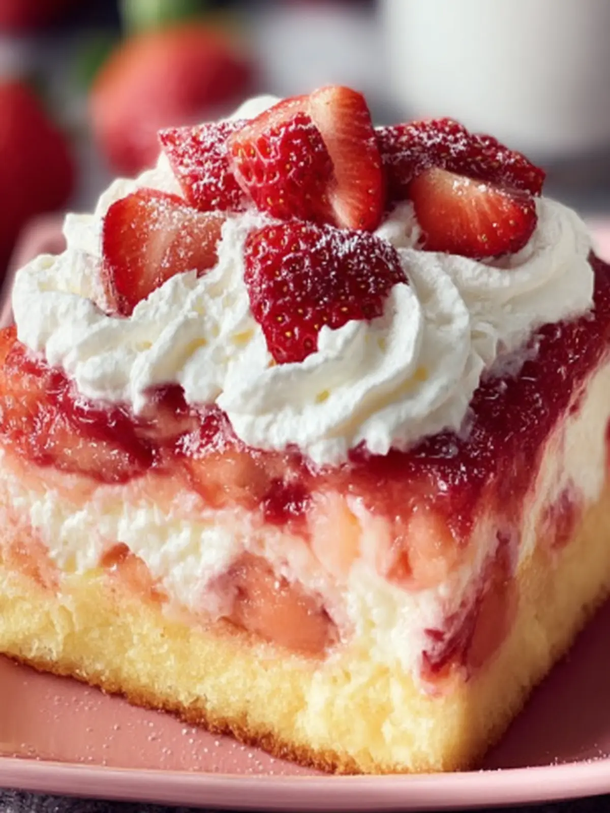 The star of this recipe is undoubtedly the fresh strawberries. Their vibrant color and natural sweetness elevate the flavor profile immensely. Paired with the buttery, soft cake base, every bite offers a burst of freshness that’s simply irresistible.